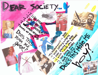 This piece of work was mainly in response to the definition of "Gender Identity Disorder" we briefly covered in class, as well as thoughts that were spurred as I discovered the stories of intersexuals and transgenders and came to understand a new way of seeing the construction of gender.